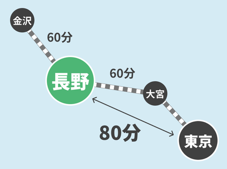 一方で、東京からは新幹線で80分しかかからず通勤圏と言っても十分なくらいの利便性の良さがあります。大宮や金沢からは60分と首都圏や北陸からも通えるほどのアクセス性の良さです。
